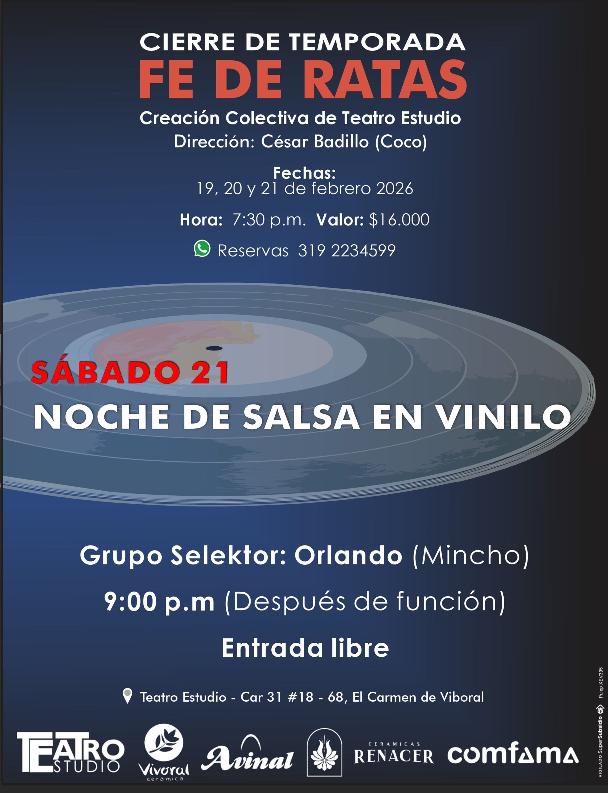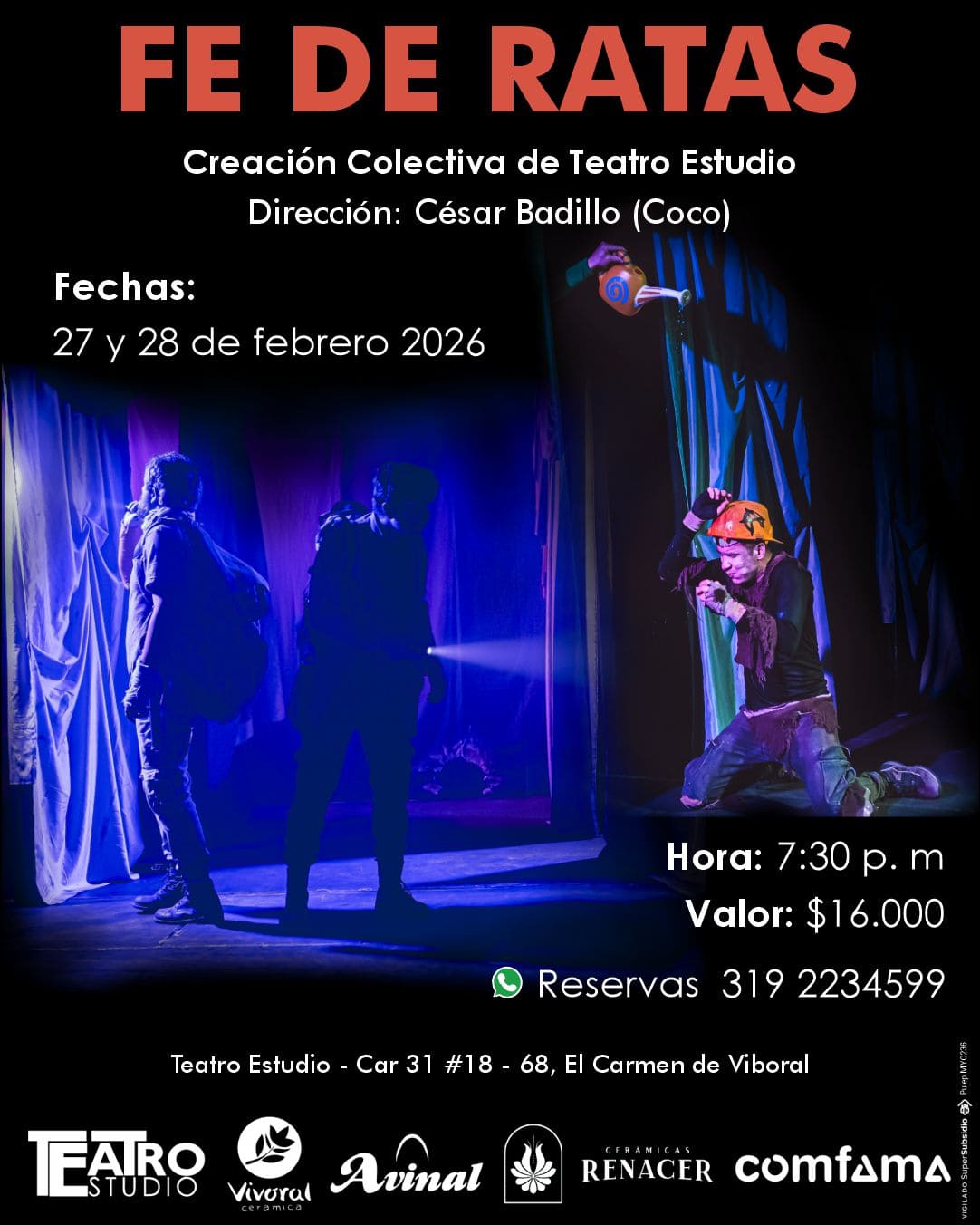 Es la primera obra de teatro familiar que presenta Teatro Estudio a consideración del público. Escrita y dirigida por Santiago Montoya, esta obra apela a una exploración alrededor de un público nuevo, bajo unas premisas nuevas: la familia y el juego. En medio de música, rimas, juegos del lenguaje y diversión, una noticia cambia el giro del noticiero y precipita el desenlace 🎭✨️